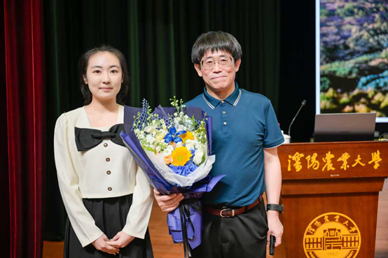 在现场互动环节,青年学子代表踊跃发言,朱院士结合自己求学和科研经历一一耐心解答,鼓励同学们要夯实专业基础,不断提高专业技能。学生代表向朱院士敬献鲜花,表达了青年学子对朱院士为打造祖国绿色长城奉献全部身心的崇高敬意。