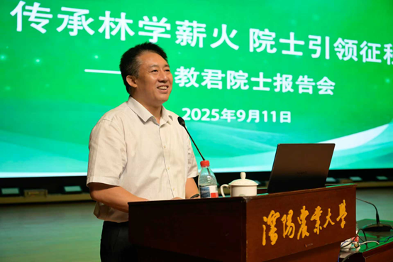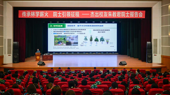 朱教君院士鼓励青年学子要勤奋学习、勇于创新,不断超越自我,报告重点介绍了防护林构建的理论与技术、防护林经营理论与技术和防护林效益评价,表示要关注人与自然和谐共生的森林“四库”联动协同提升的理论与技术、生物多样性驱动的森林“四库”形成机制。朱院士希望新时代沈农青年有理想、有担当,执着追求知林、爱林的崇高情怀,肩负起建设生态文明的历史使命。
