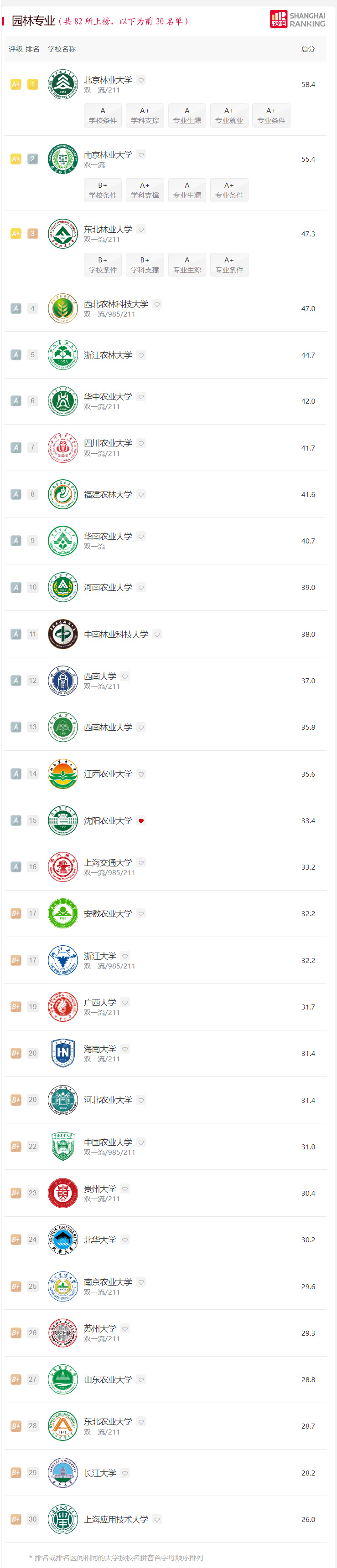 近日,软科发布2022年“中国大学专业排名”,韦德官方网站园林专业排名15(前9%)上升1位,评级保持A;风景园林专业排名50(前23%)评级B;林学专业排名17(前35%)评级B。