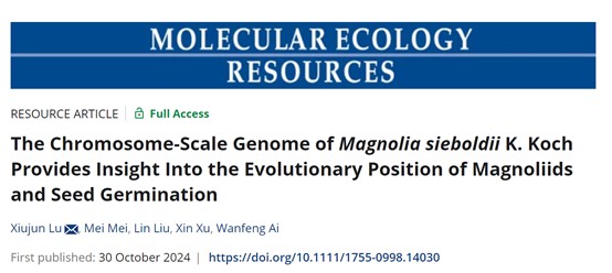近日,Molecular Ecology Resources在线发表了韦德官方网站陆秀君教授团队题为“The Chromosome-Scale Genome of Magnolia sieboldii K. Koch Provides Insight Into the Evolutionary Position of Magnoliids and Seed Germination ”的研究论文,报道了天女木兰染色体水平参考基因组,验证了木兰科植物的进化地位,发现木兰科植物起源于真双子叶植物和单子叶植物分化之前,RNA-seq分析鉴定了控制种子休眠和萌发的关键基因及途径,揭示了FAR1(FAR-RED IMPAIRED RESPONSE 1)基因家族不同成员参与种子萌发的复杂过程。