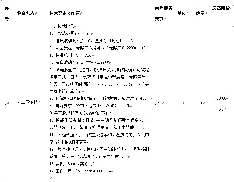 一、项目名称:韦德官方网站人工气候箱项目询价采购