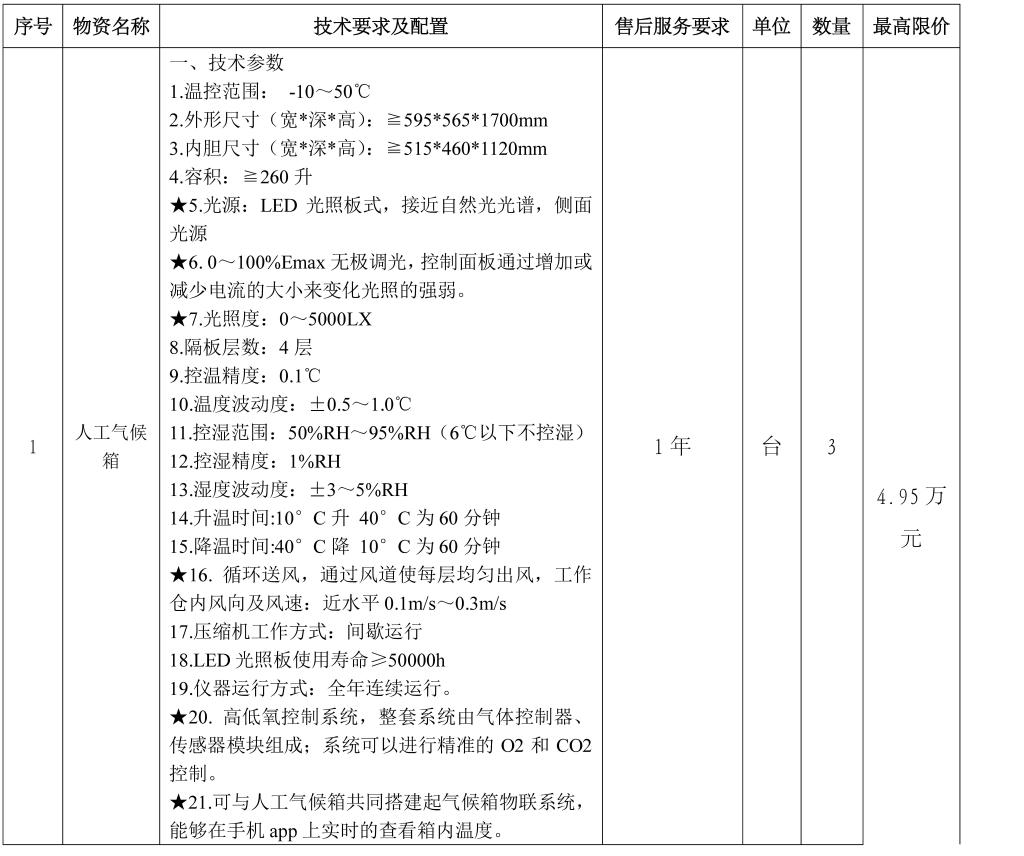 一、项目名称:韦德官方网站人工气候箱询价采购项目
