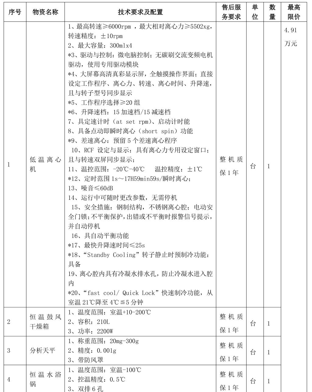 一、项目名称:韦德官方网站低温离心机等设备询价采购项目