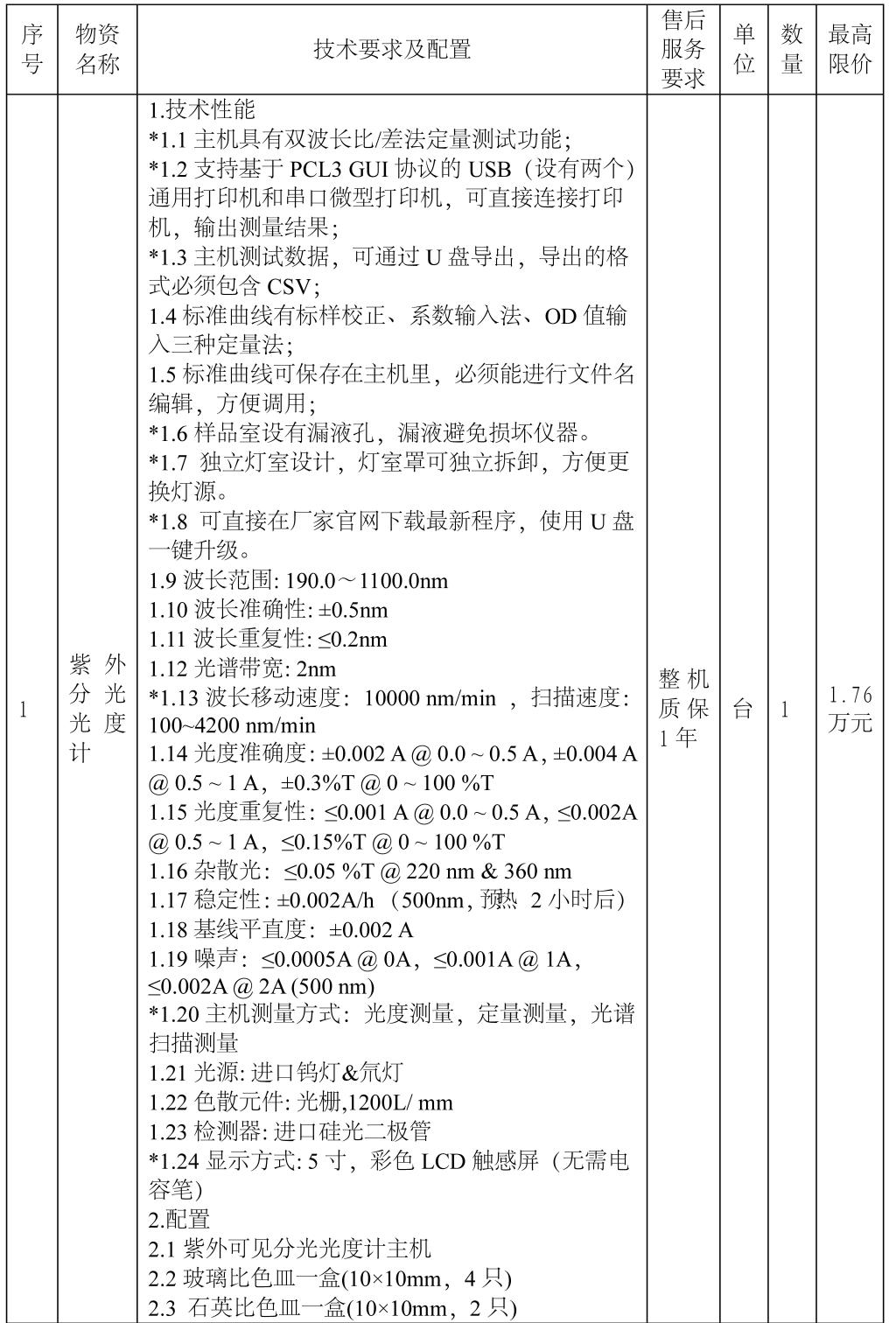 一、项目名称:韦德官方网站紫外分光光度计设备询价采购项目