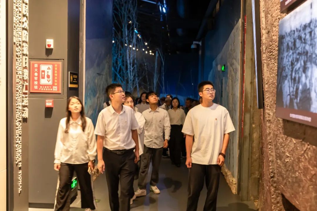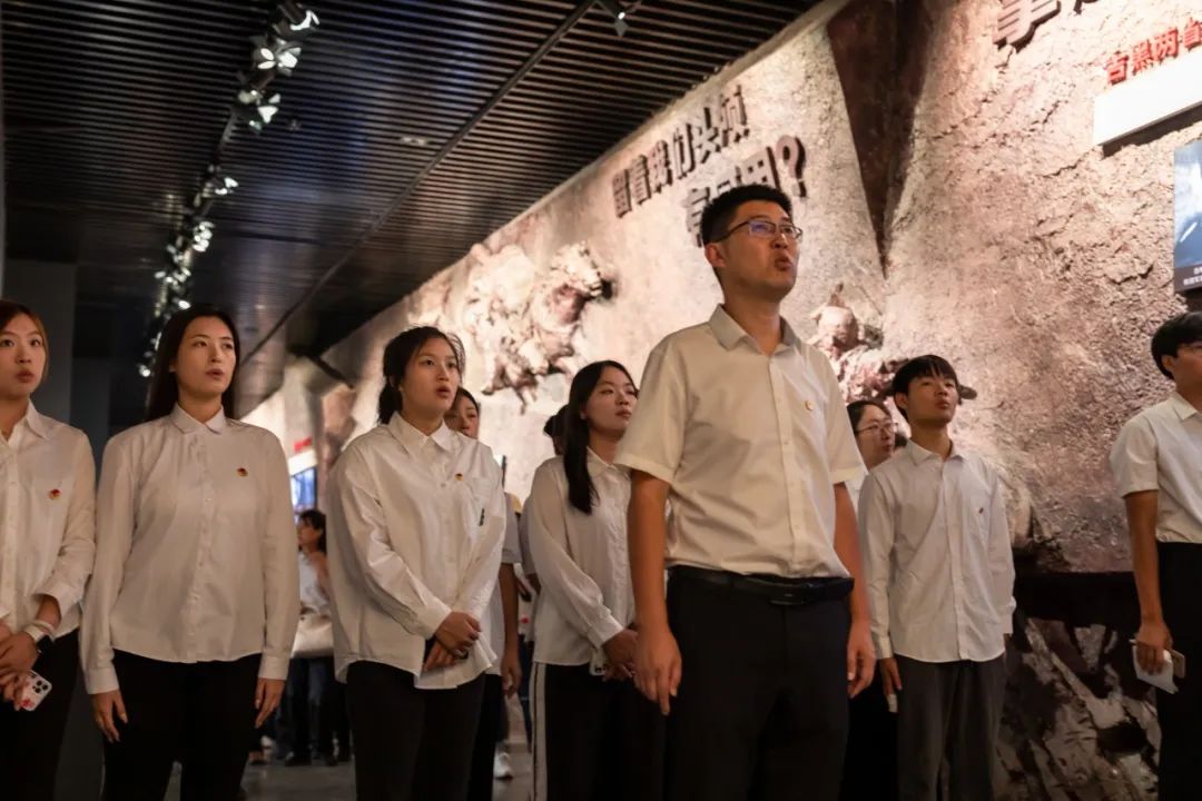 师生在介绍抗战英雄及其事迹的展板前肃穆驻足,在《义勇军进行曲》的词曲展墙前,齐唱国歌,一行人深切缅怀革命英烈,并被他们的民族大义与家国情怀深深感动,对历史的敬畏感与民族责任感油然而生。参观学习结束后,全体师生深受震撼,感触良多。