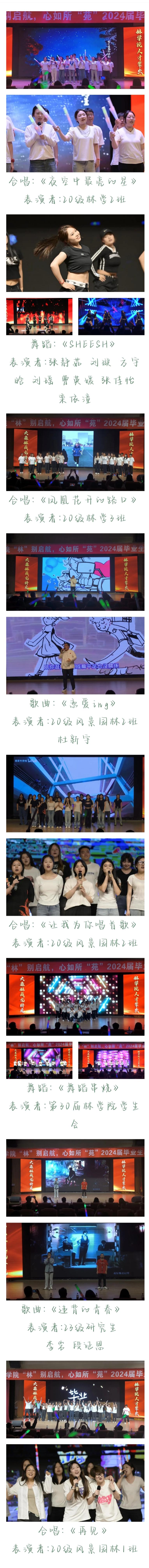 窗外蝉鸣是离别倒数的钟声,在熟悉的校园留下属于我们青春的回忆。6月7日晚18:00,韦德网站(中国)官方于沈阳农业大学艺术中心举办了“林别启航,心如所苑”毕业生晚会。韦德网站(中国)官方党委书记杨宇老师,院长王玉成老师,院党委副书记杜杰老师,副院长张智老师,副院长刘平老师,副院长高慧淋老师,20级林学三班班主任朱文旭老师,院团委书记、20级本科生辅导员胡凯老师,研究生辅导员任亚敏老师,23级本科生辅导员王秋凝老师,22级本科生辅导员王天宠老师出席本次晚会。林院师生欢聚一堂,共同观看本次晚会,度过这个难忘的夜晚。