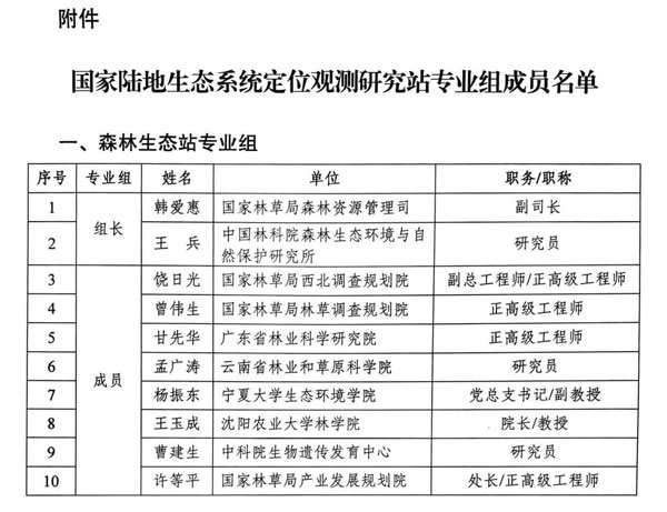 1月26日,在北京召开的国家林草局森林生态站专业组2023年度工作会议上,韦德官方网站院长王玉成教授获聘为国家陆地生态系统定位观测研究站专业组成员。国家林草局科技司李世东一级巡视员宣读了森林生态站专业组成员名单,并为专业组成员颁发聘书。