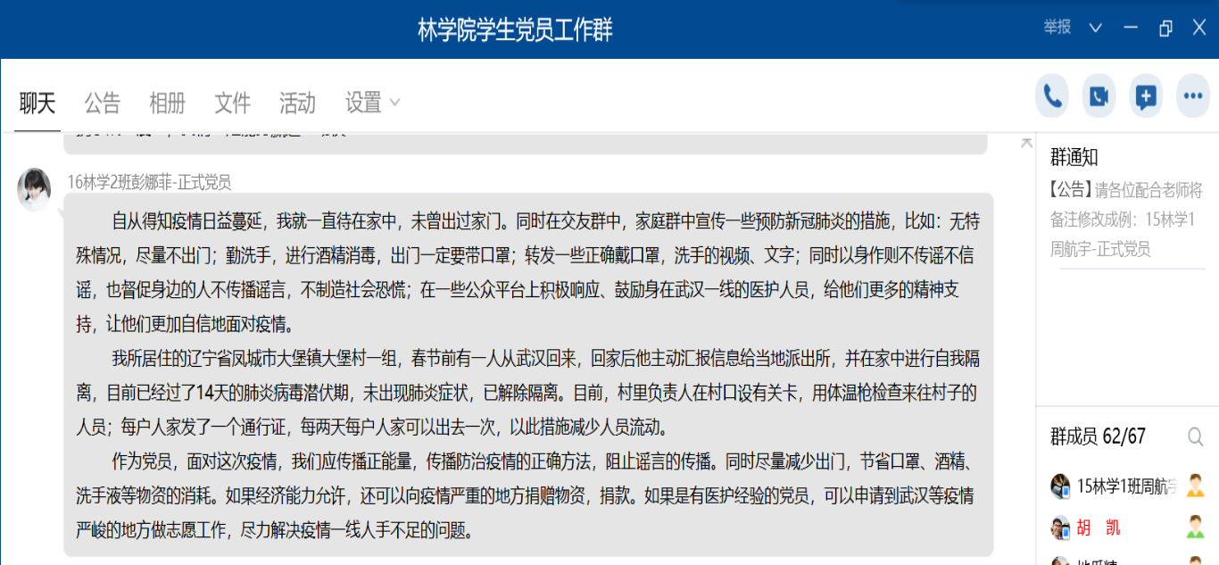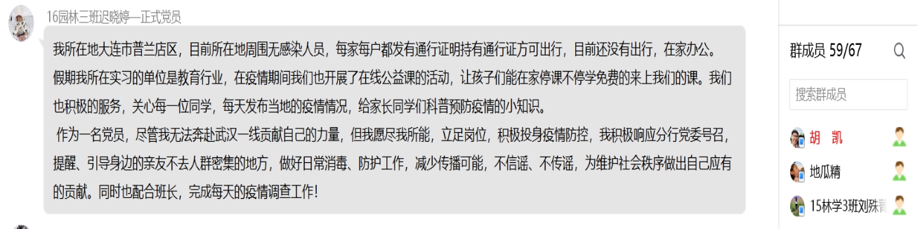 通过本次主题党日的学习,各个党员同学深知确保人民群众生命安全和身体健康,是我们党治国理政的重中之重。我们相信在党中央坚强领导下,坚持全国一盘棋,上下一心、众志成城,我们一定能够打败新冠肺炎病魔,夺取疫情防控阻击战的全面胜利!