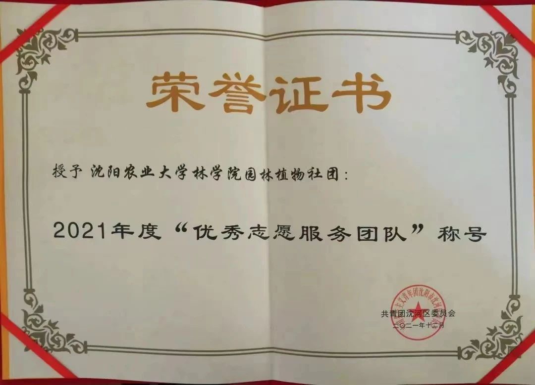 在2021年,我们社团获得了沈河区委会给予的年度“优秀志愿服务团队”称号。