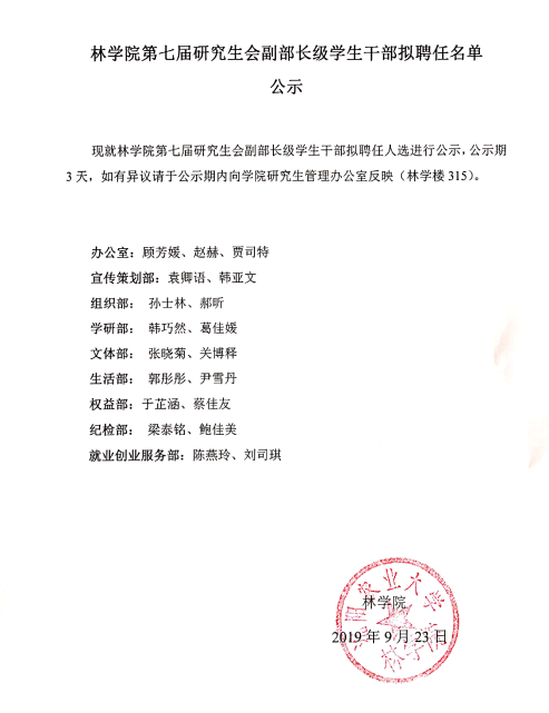 韦德网站(中国)官方第七届研究生会副部长级学生干部拟聘任名单