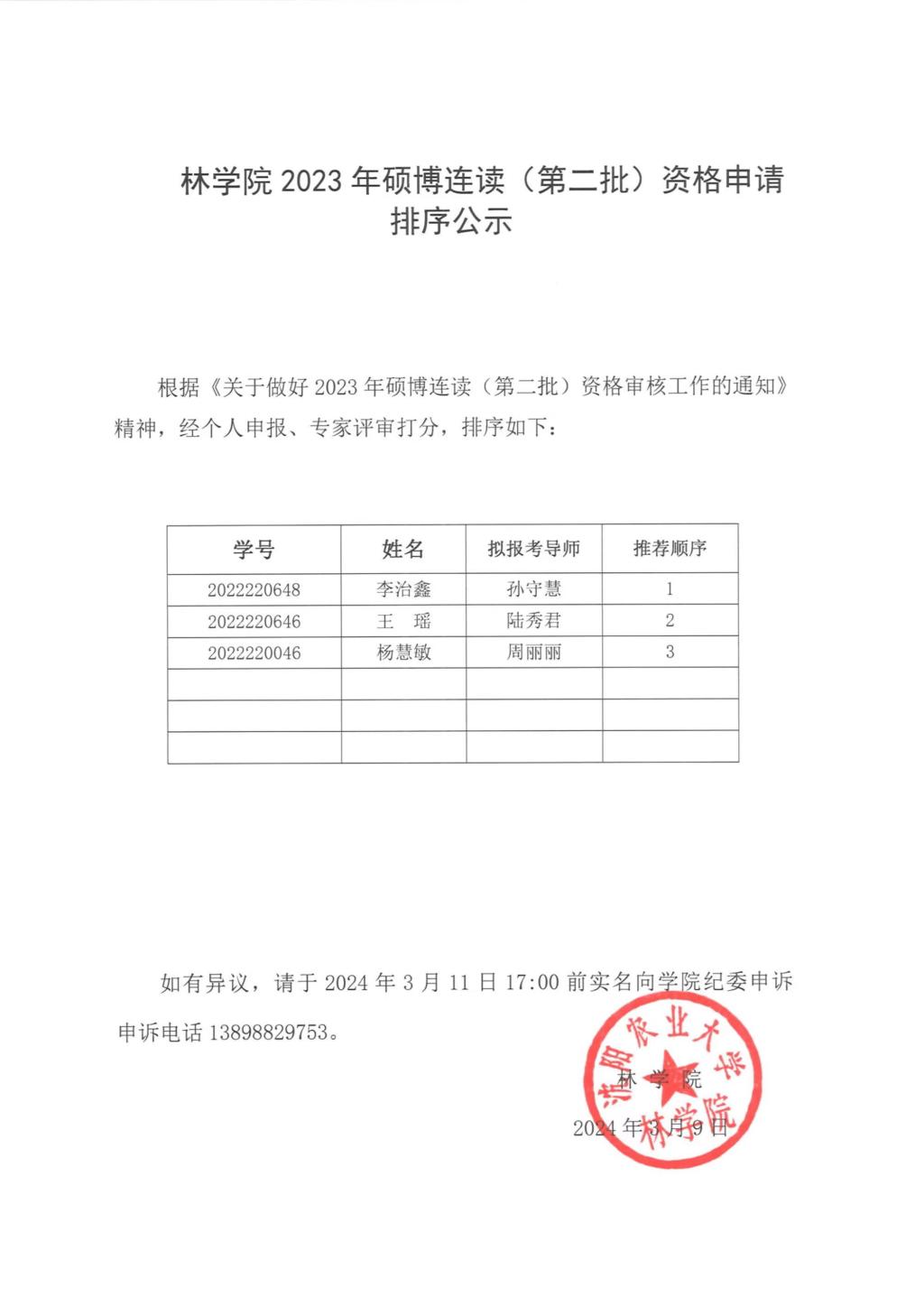 韦德网站(中国)官方2023年硕博连读(第二批)资格申请排序公示