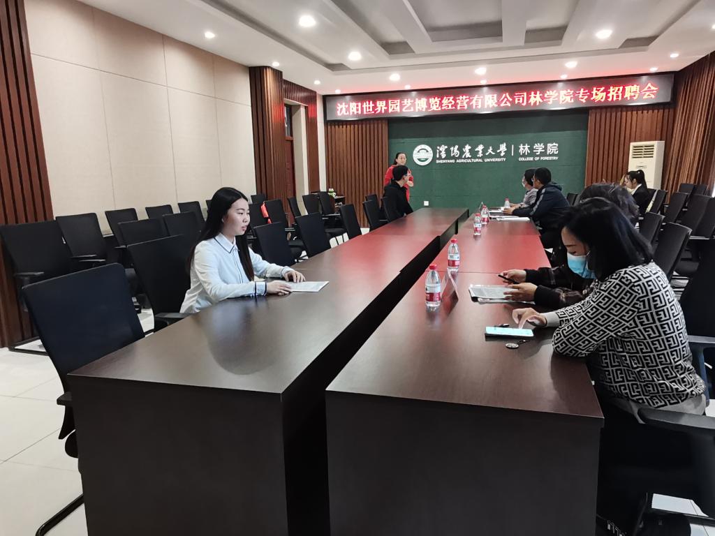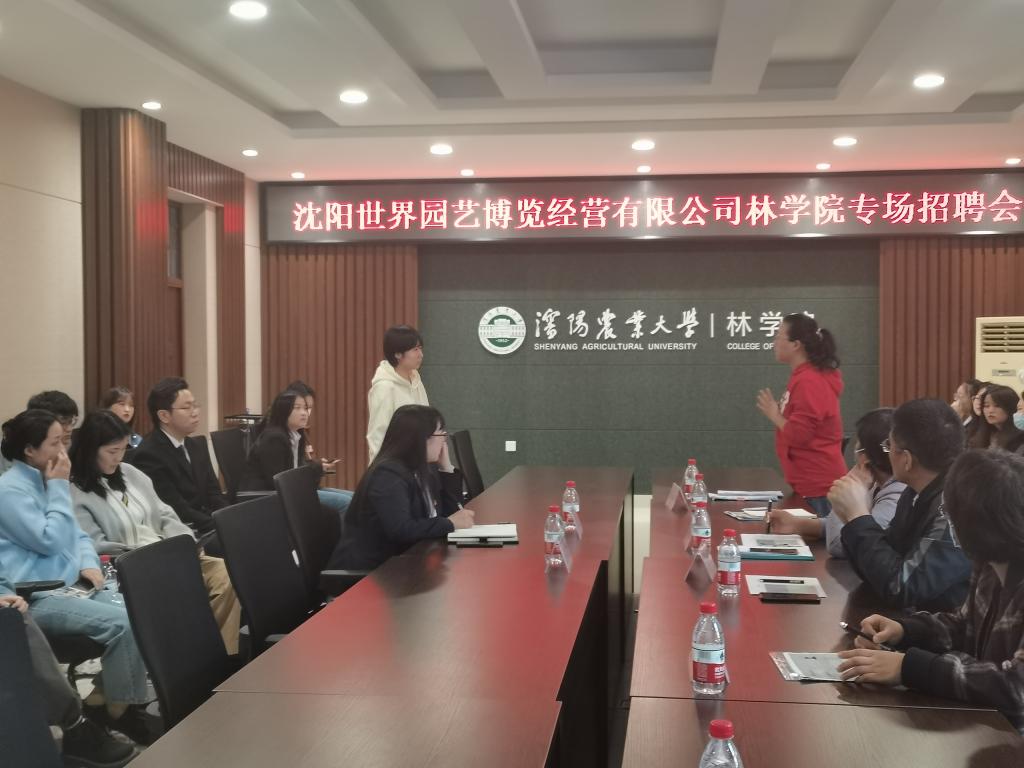 3月30日下午,沈阳世界园艺博览经营有限公司韦德网站(中国)官方专场招聘会在学院308室召开。会议邀请了沈阳世界园艺博览经营有限公司总工程师王文元、办公室主任等一行7人,林学院党委副书记杜杰老师、学生辅导员出席会议,40余名研究生、本科生参加招聘会。