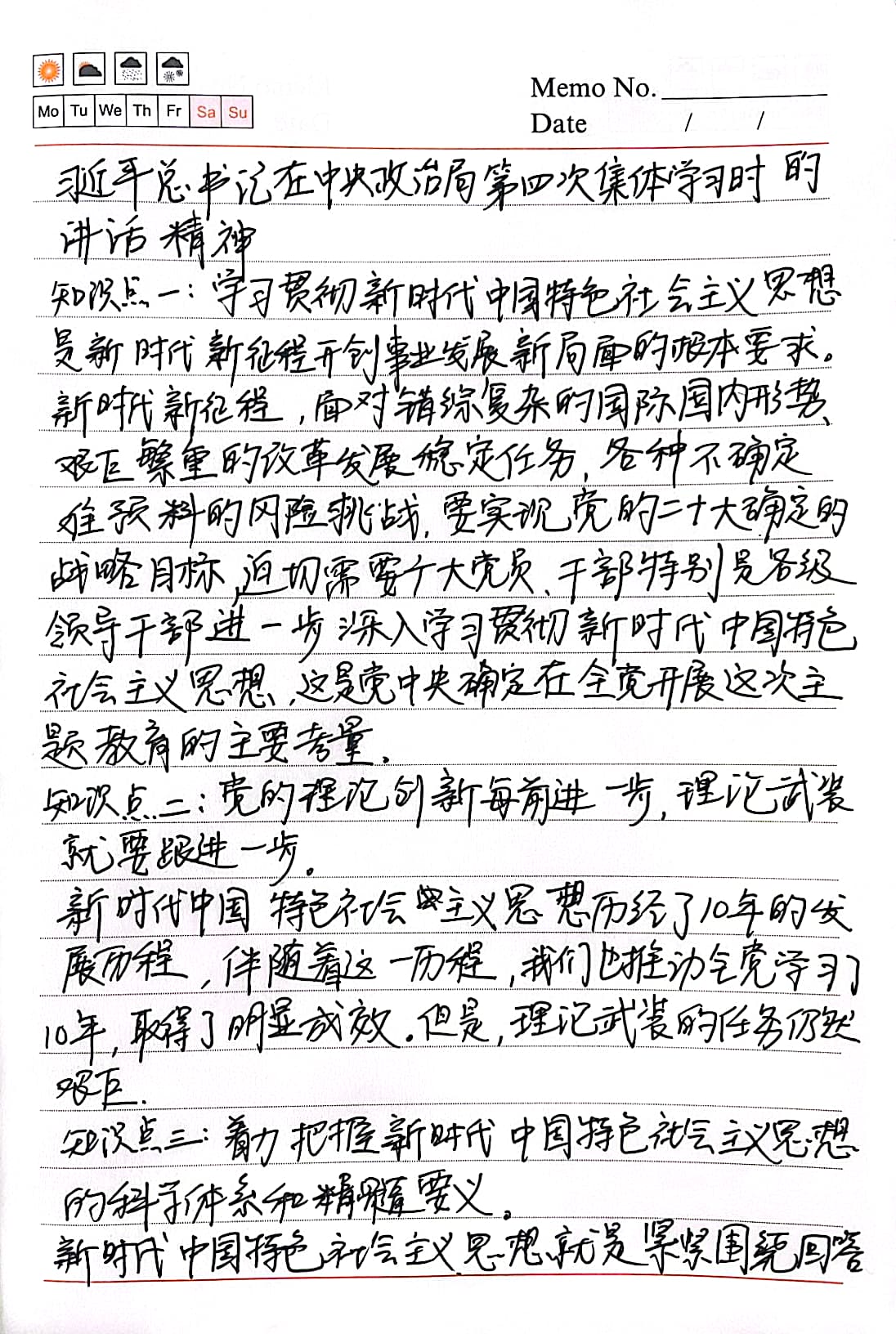 本周韦德网站(中国)官方主题教育围绕习近平总书记在中央政治局第四次集体学习时的讲话精神展开自学。让我们看一看师生党员在理论联系实际的过程中有哪些感悟吧!