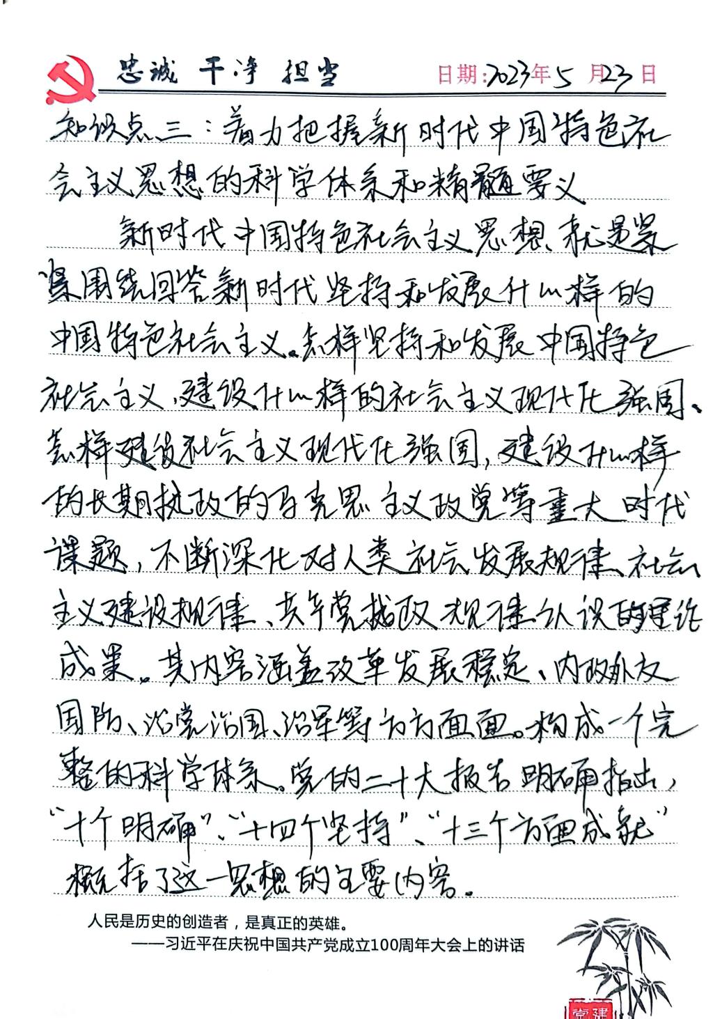 我们要发扬理论联系实际的优良作风,“不忘初心、牢记使命”。只有理论联系实际,才能真切感悟到科学理论的真理力量。作为党员,我们要将党的创新理论运用到贯彻落实党的二十大提出的重大战略部署中去,始终保持共产党人的政治本色。