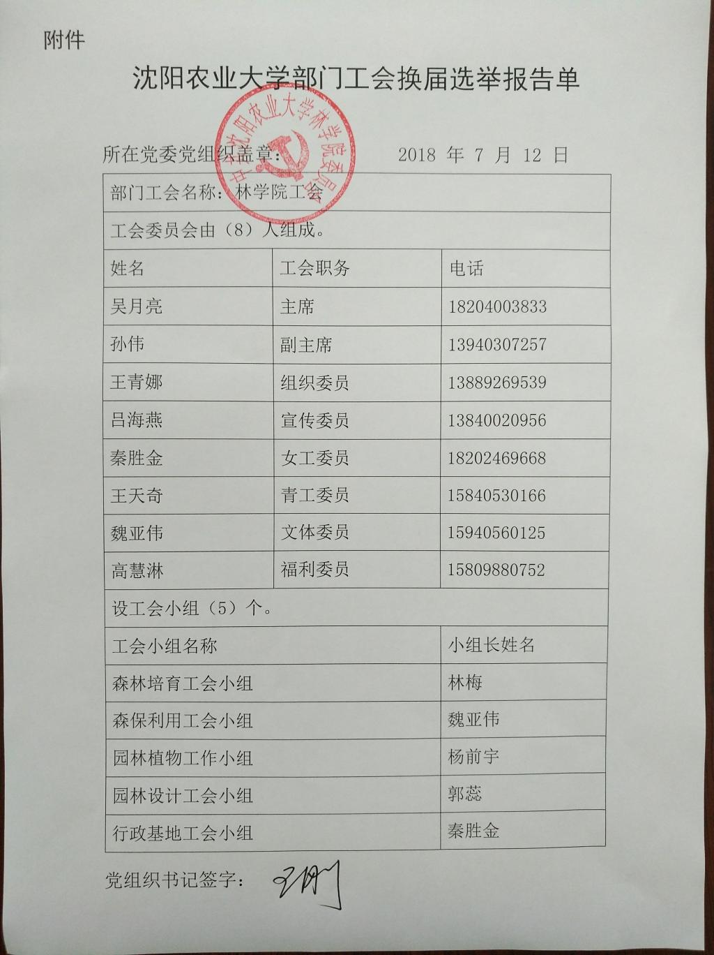 2018年7月12日韦德网站(中国)官方召开工会会员代表大会,按照《中华人民共和国工会法》有关规定和沈阳农业大学工会文件的通知要求,在学院党委的支持下,完成了韦德网站(中国)官方工会委员会换届选举工作,韦德网站(中国)官方新一届工会委员会的名单见附件: