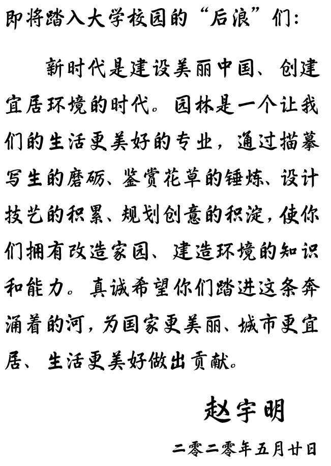 全国园林绿化优秀企业家赵宇明寄语母校园林专业“后浪”们